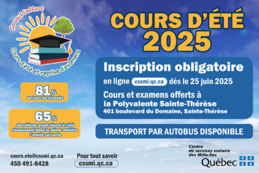 Nous souhaitons à toute notre belle communauté éducative une rentrée scolaire remplie d’énergie et d’enthousiasme ! Ce qui fait la richesse et la force du CSSMI, c’est la collaboration constante entre l’école et les familles. L’année 2025-2026 s’annonce comme une belle occasion de nous rassembler, d’innover et de faire preuve de solidarité afin d’offrir à […]